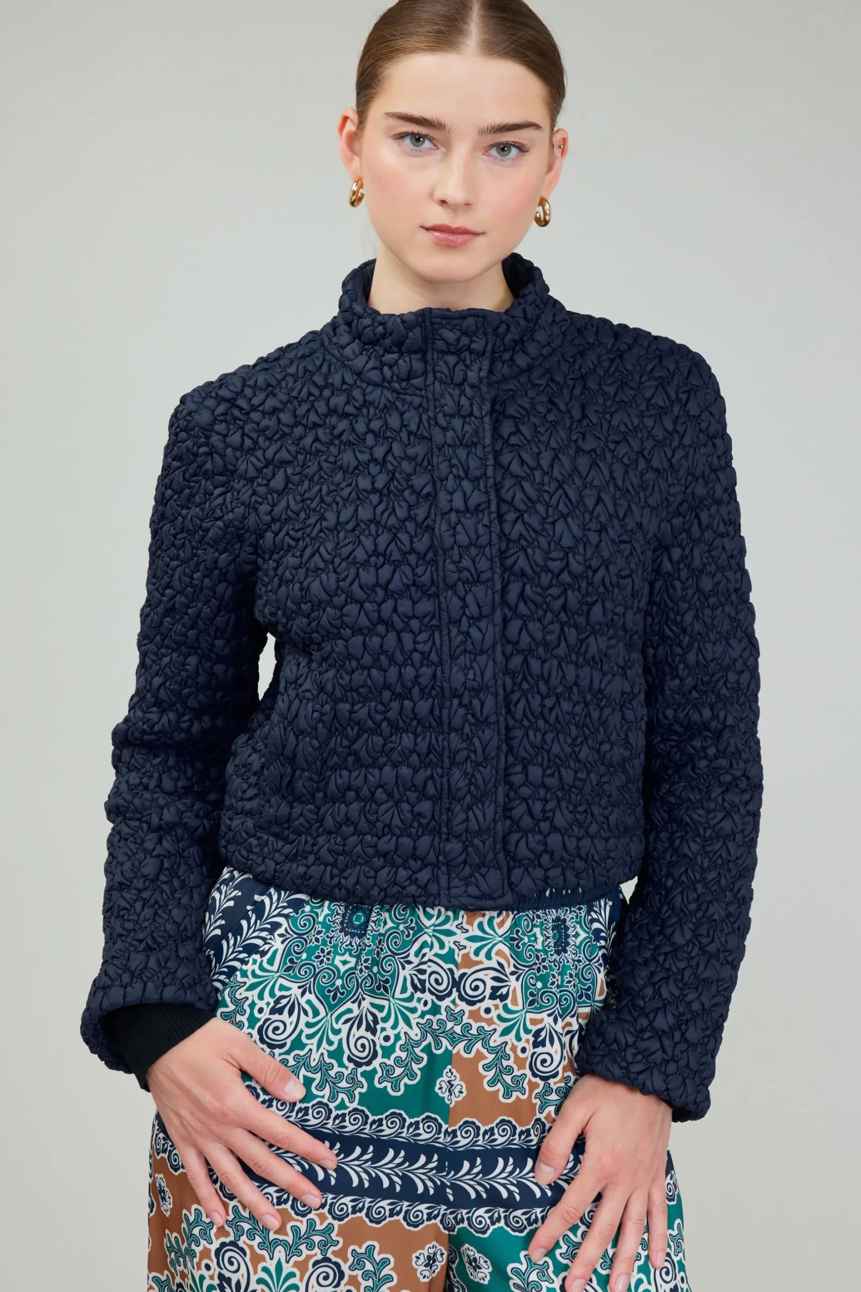 Keep this slightly puff jacket at hand for the shift into cooler temps. Cropped and quilted, it’s an easy way to bring extra warmth to your outfits.