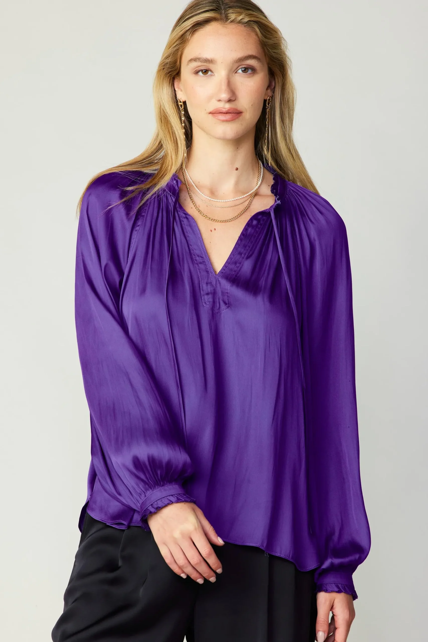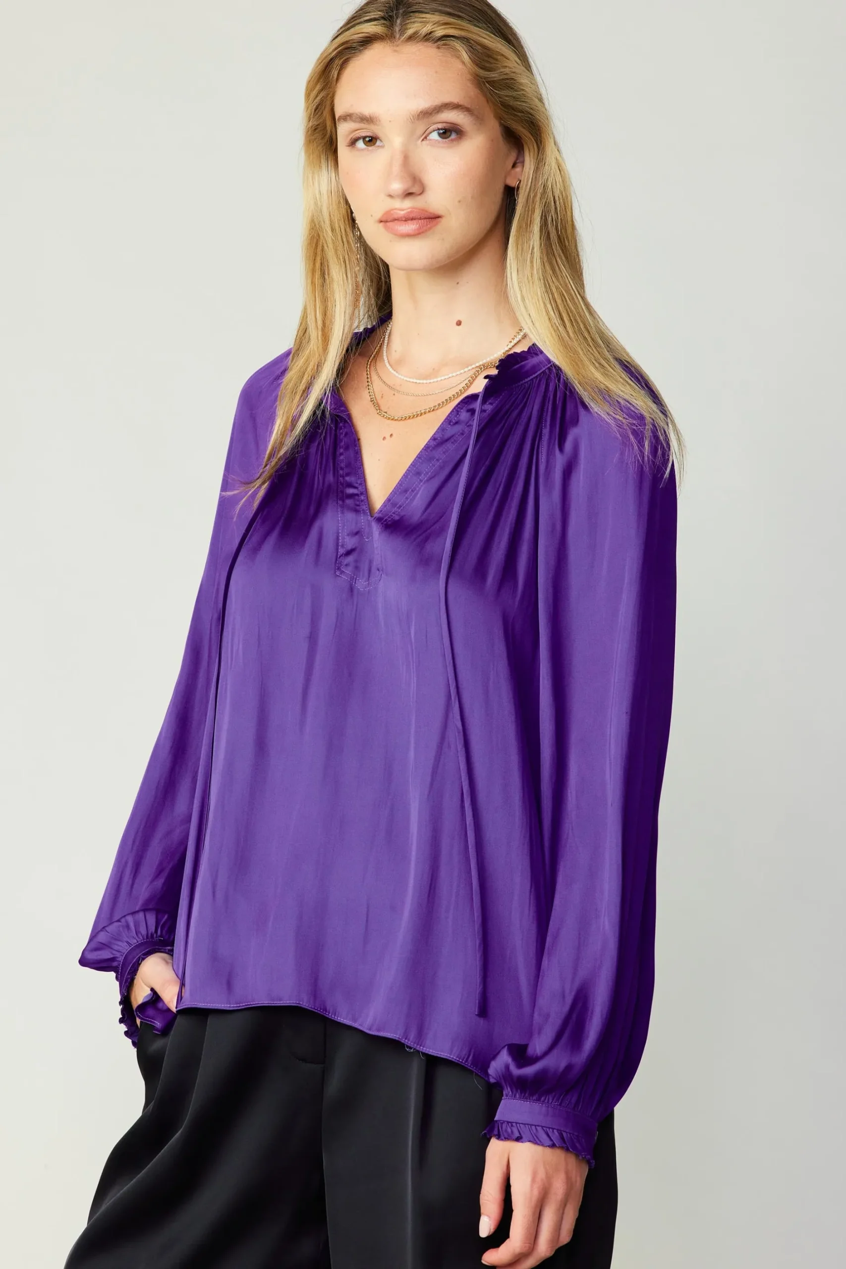 •Split neckline with self-tie