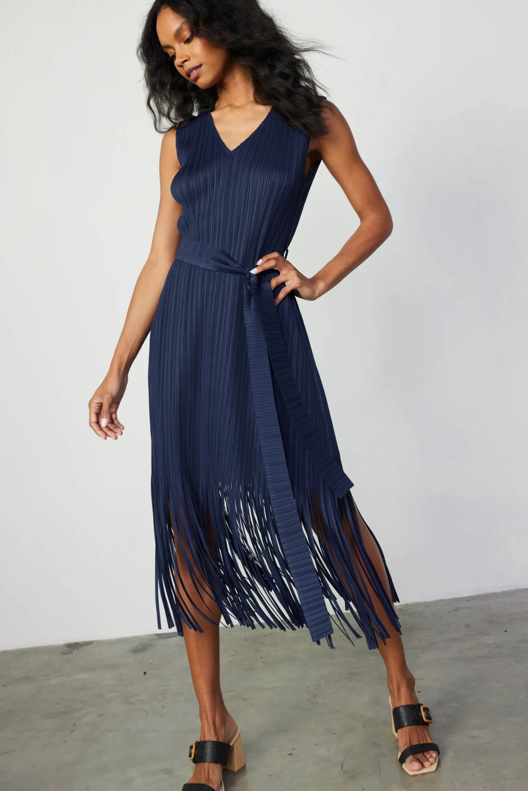 Mini Dresses-Current Air Chevron Pleat Mini Dress NAVY