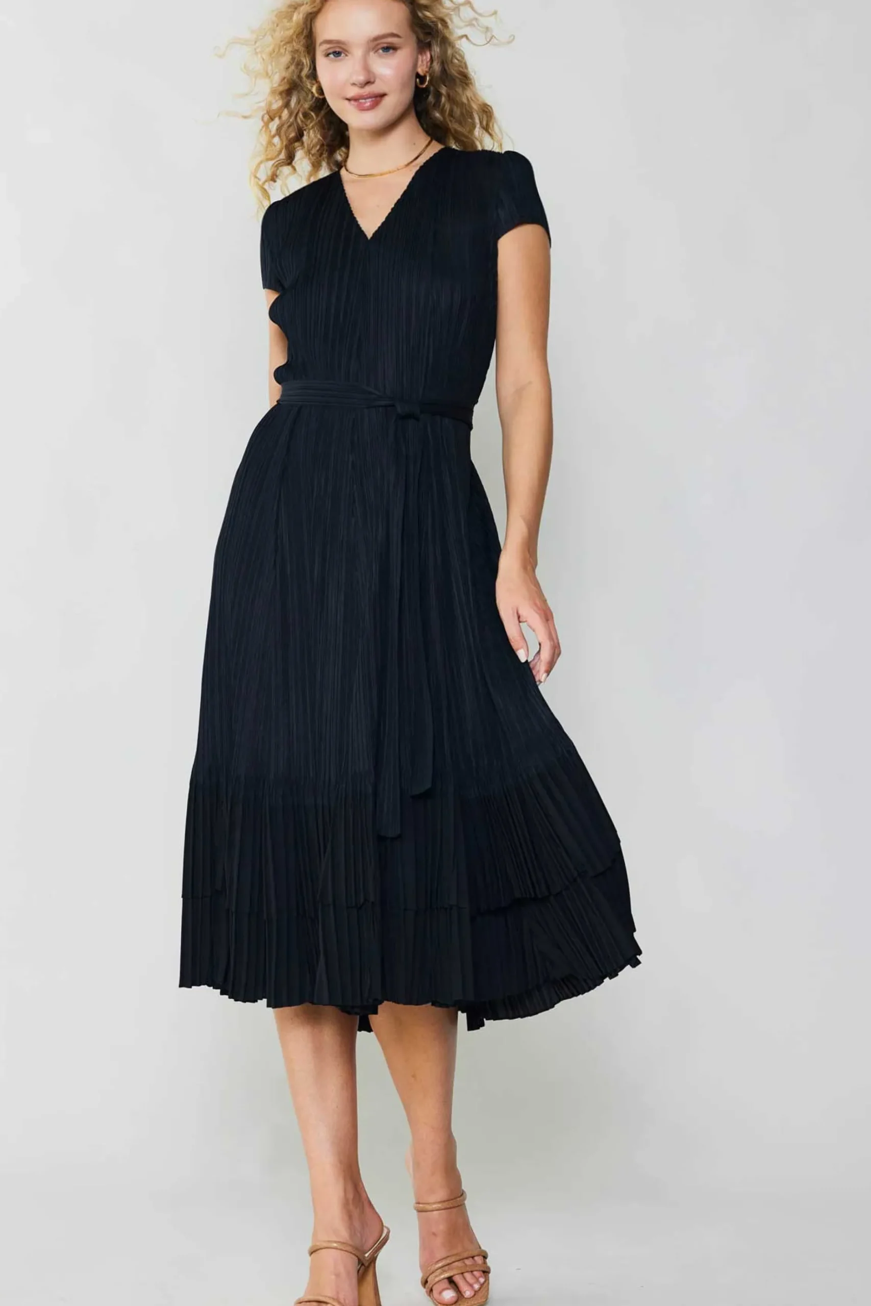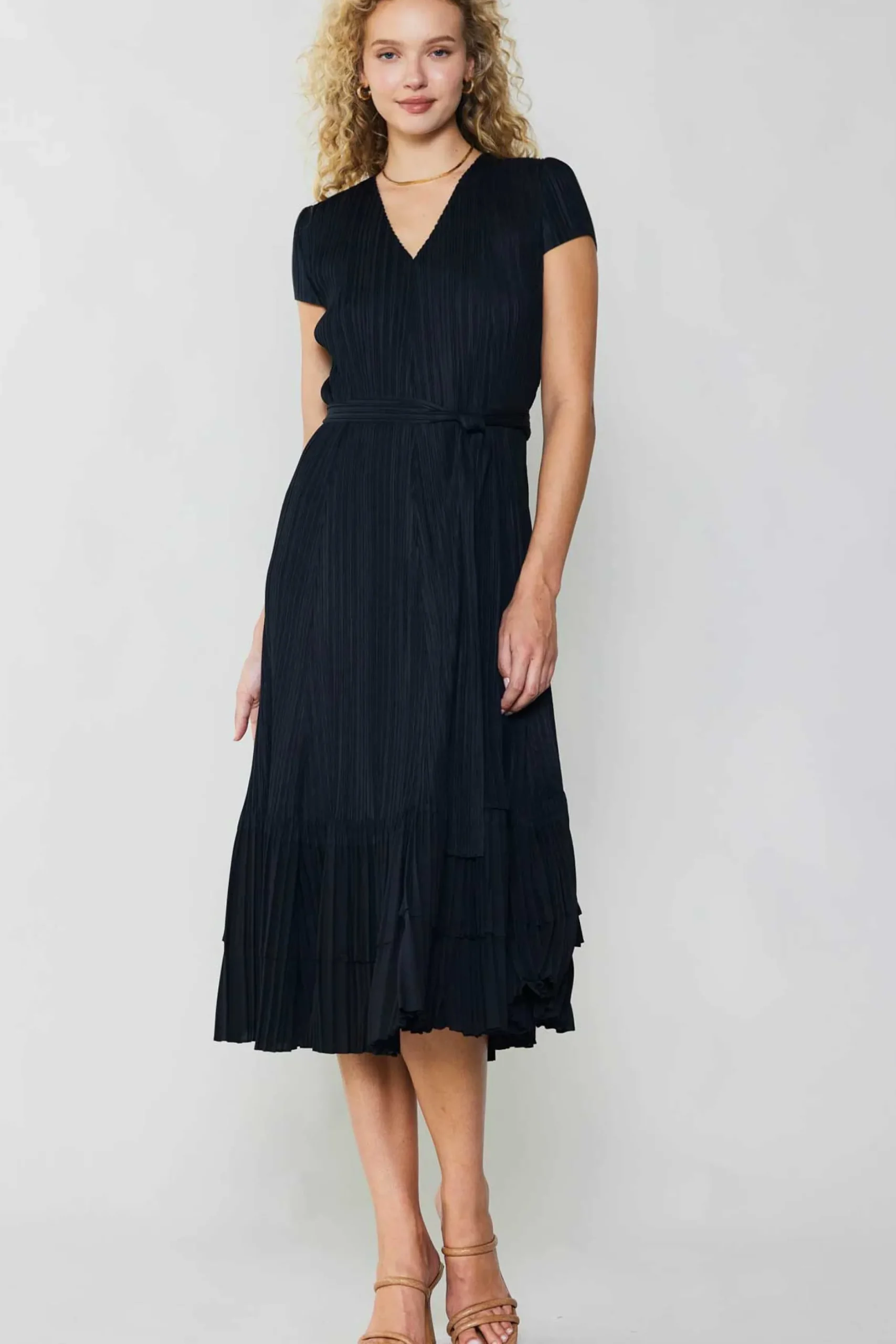 Mini Dresses-Current Air Briene Pleated Mini Dress LATTE