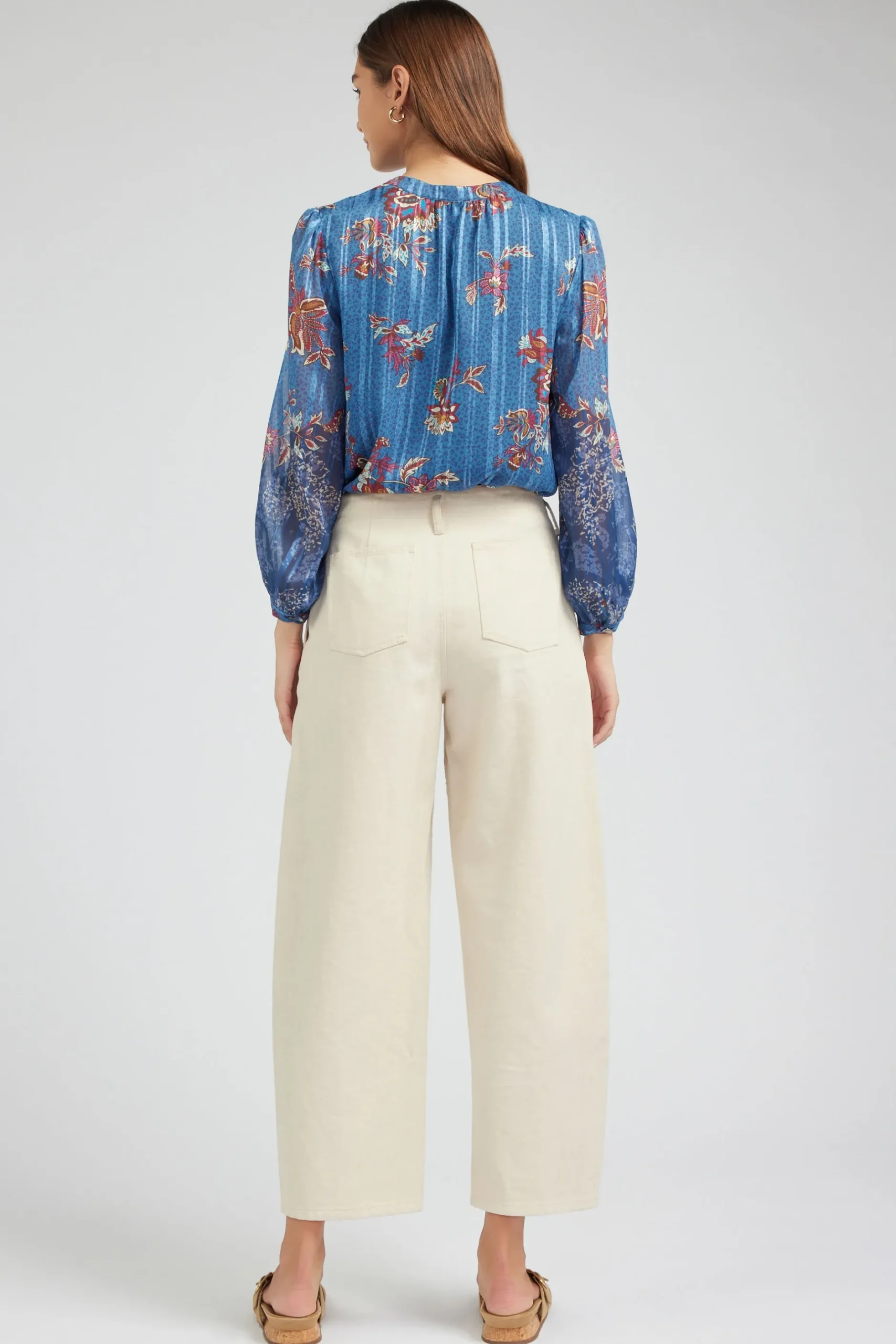 These barrel-leg pants will lend a sculptural element to your outfits. Embroidered with tonal floral accents, the high-rise pair is defined by a darted waist, paneled styling, and a curved shape through the legs. Complete with on-seam front pockets and patch pockets at the back.
