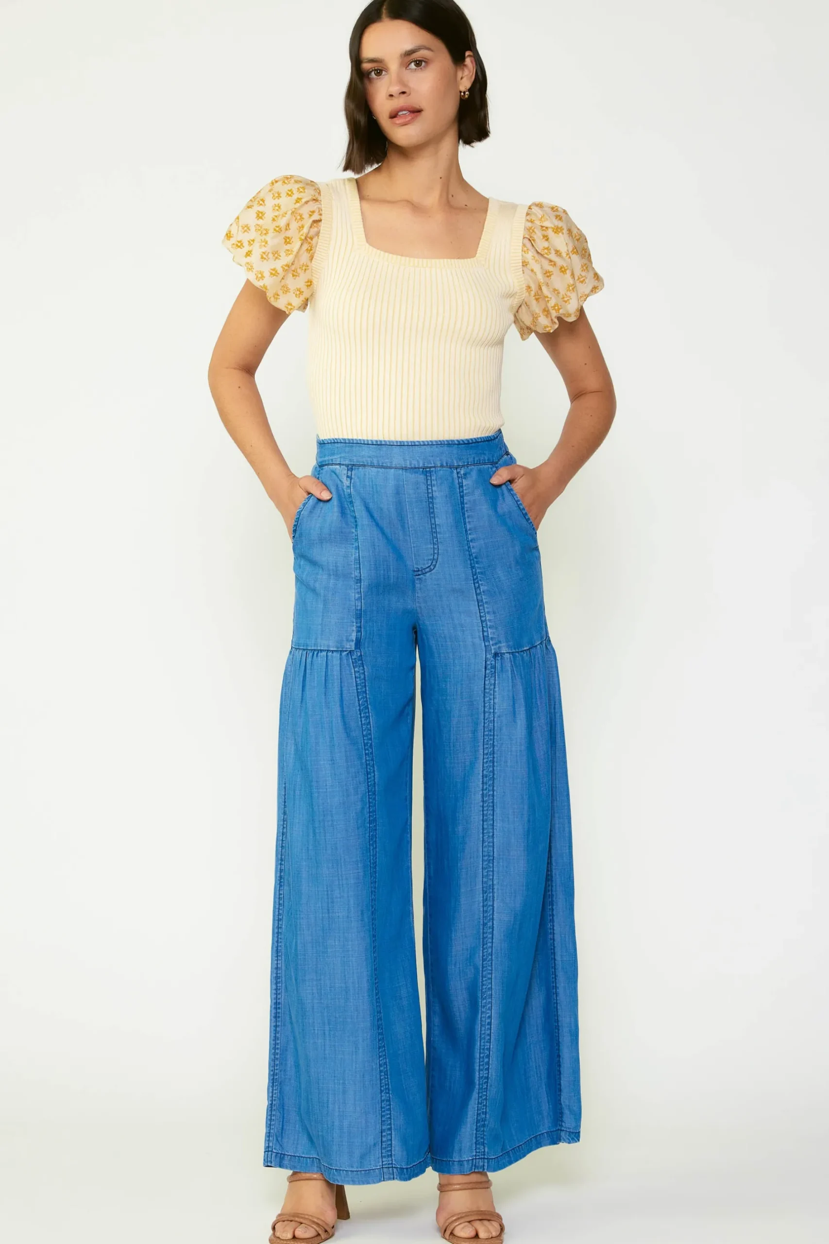 These chambray wide-leg pants are an instant favorite for beach getaways and weekend get-togethers alike. They’re lightweight and effortless, featuring a pull-on design with roomy front pockets, an elasticized back waistband, and gentle gathers that enhance the flowy shape.