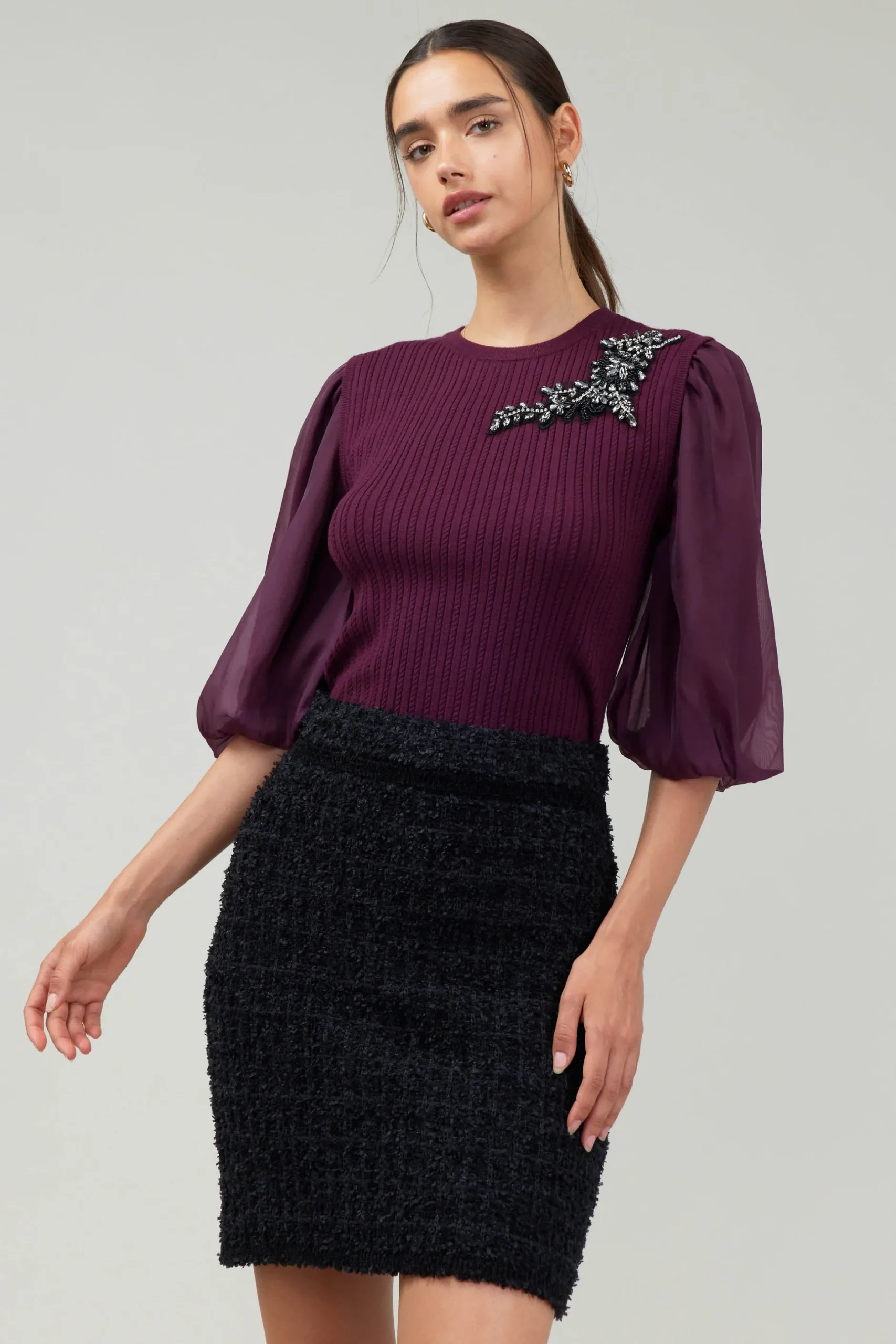 This skirt couldn’t be more charming. Closed with Hook and eye, match it with a tweed jacket or an attention-grabbing top.