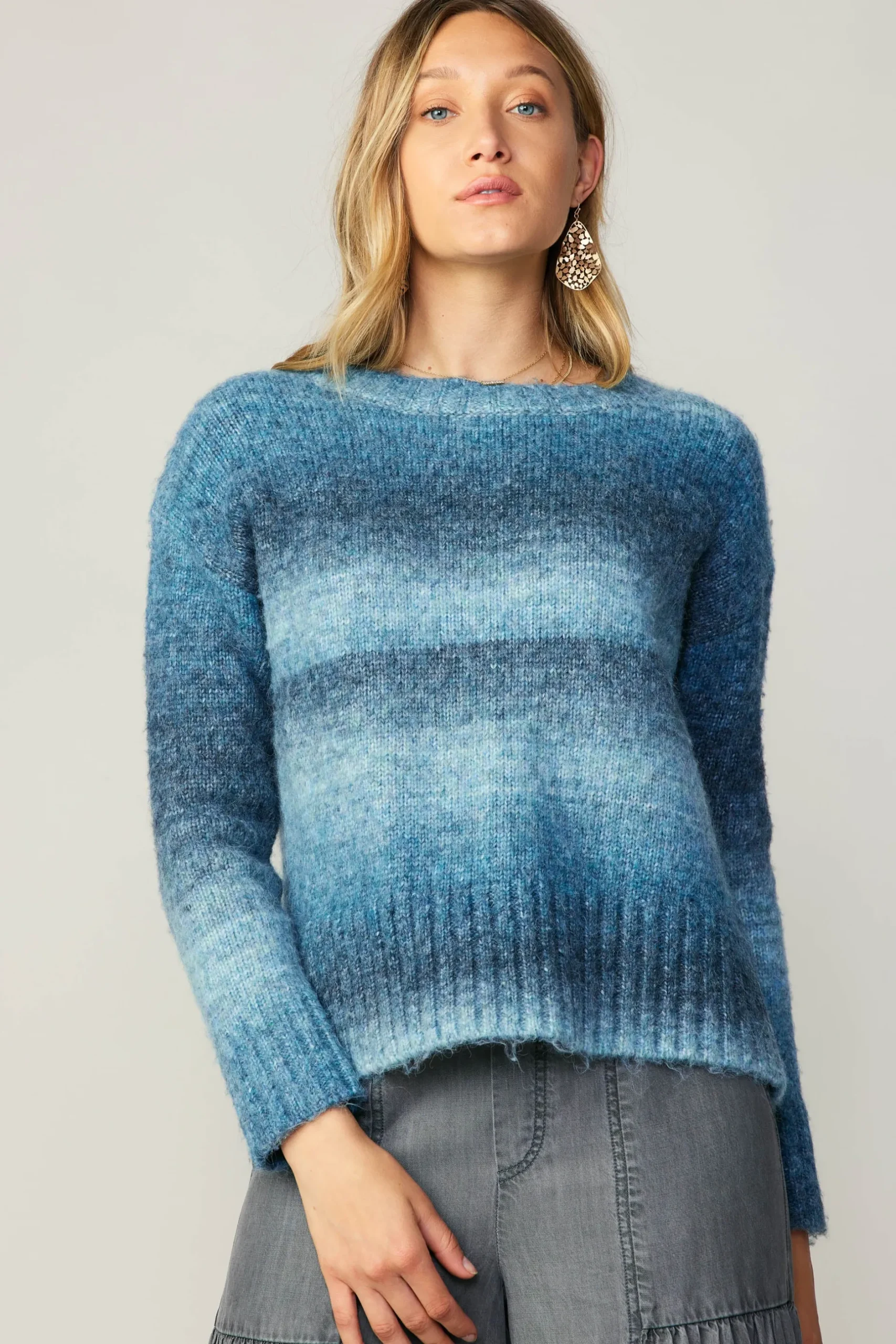 A beautifully done, gradient shading is the star of the show with this cozy sweater. It features ribbed edges for a comfortable fit and subtle detail. Perfect for transitioning into the fall season.