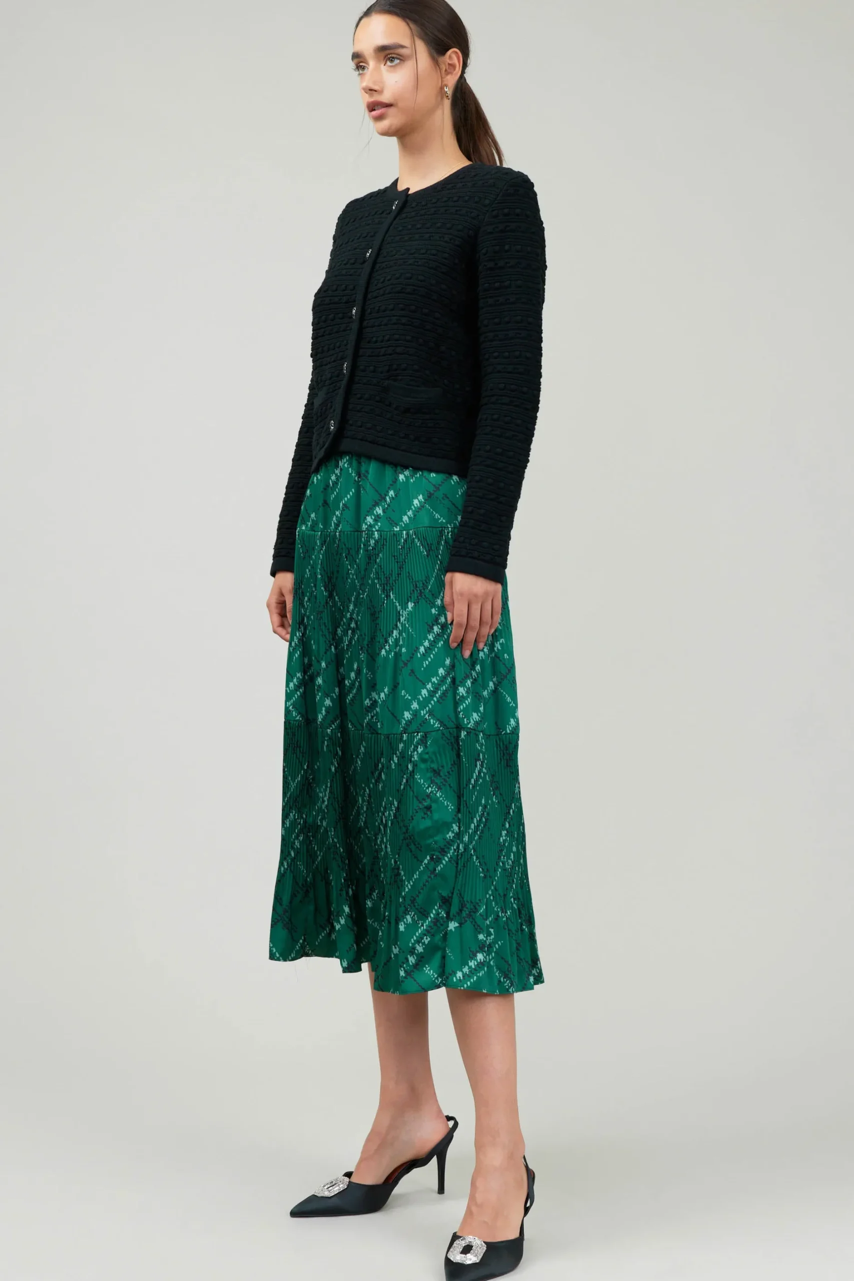 Time to get your closet ready for cooler temps. Our suggestion? This lightweight cardigan featuring button closures, and zigzag pointelle stitching that’s highlighted at the front by a bit of contrast dotting.