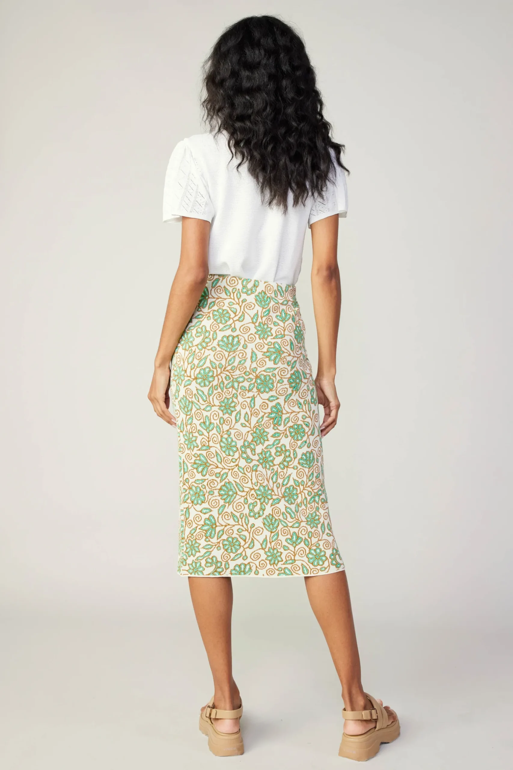 Designed in a textured knit, this midi skirt has a comfortable pull-on waist and side slits. It’s a chic, simple style you’ll want to wear with everything.