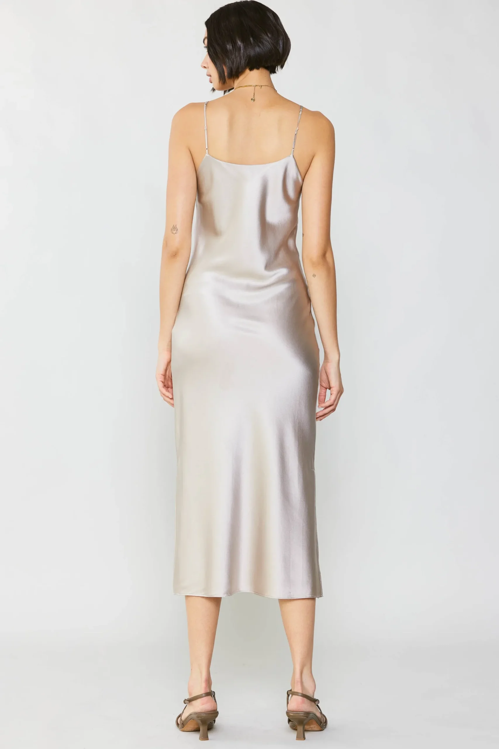 This luxe, mid-length slip dress has that alluring ’90s minimalist look down pat. From that sexy little slit to the way it glides along the contours of the body, it’s designed to make you feel like the goddess you are.