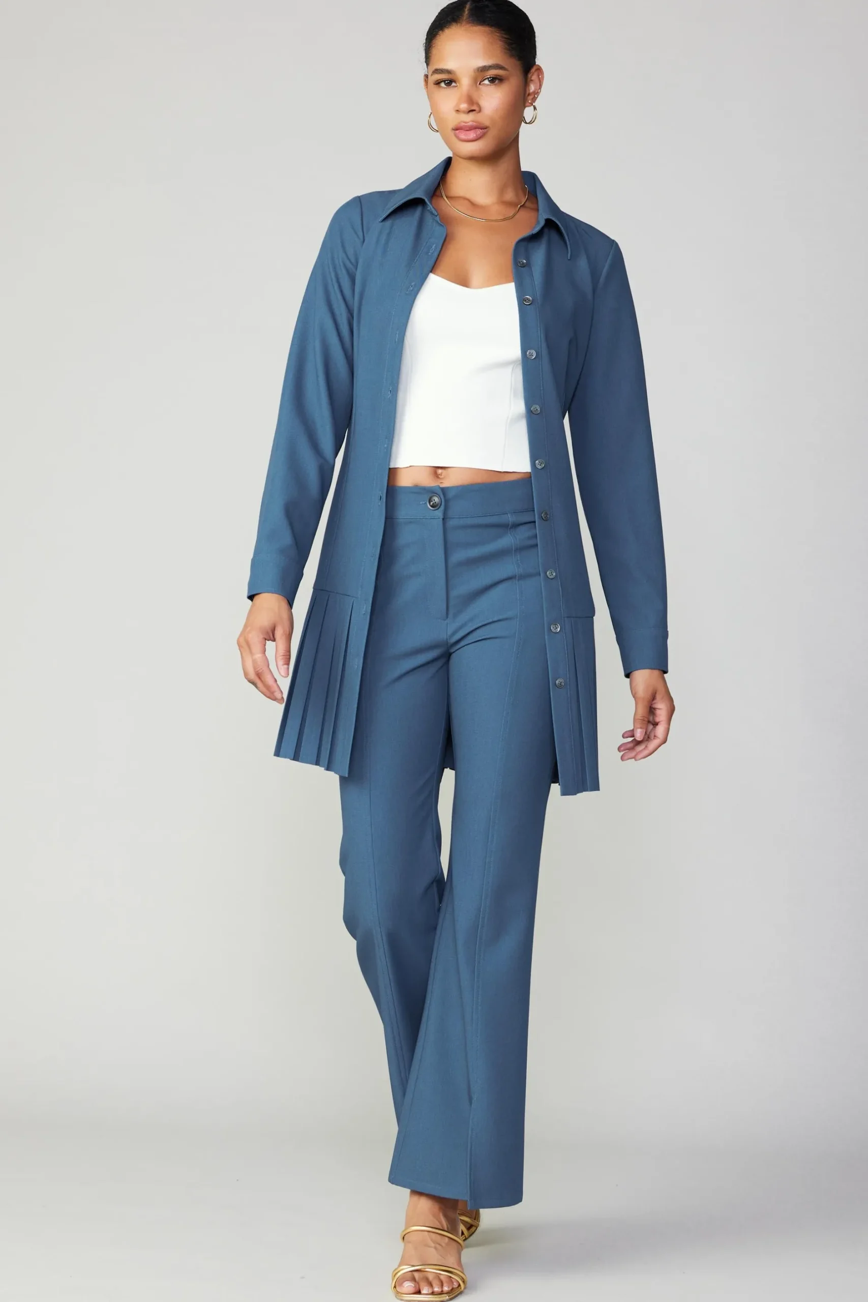 These bootcut pants are just the flair you need in your wardrobe this season. the pair has a clean waistband, pintuck detailing down the legs, and slit hems at the front.