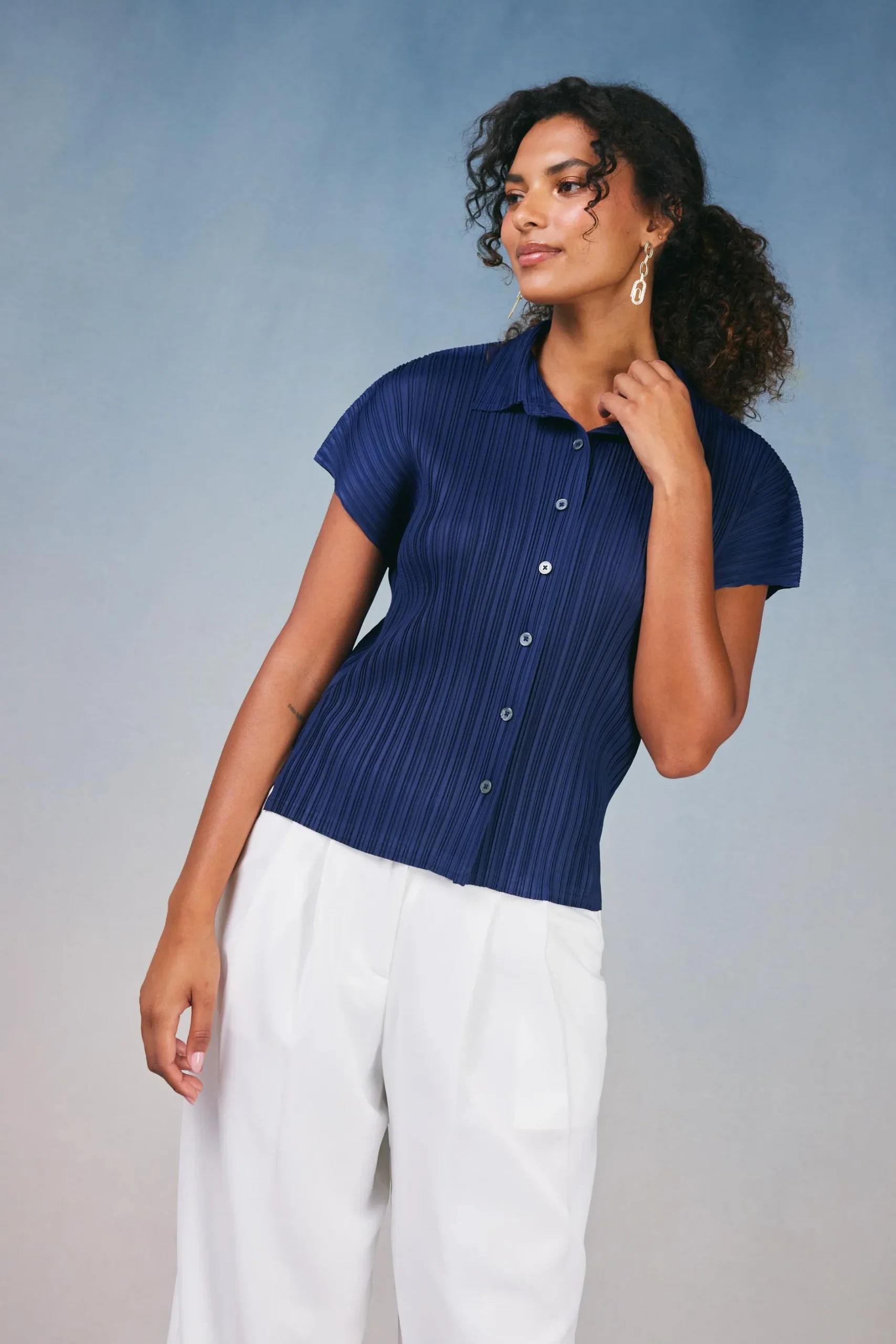 This top feels completely lounge able, but the pleated style is polished enough to wear to work. A versatile chic option for any occasion.