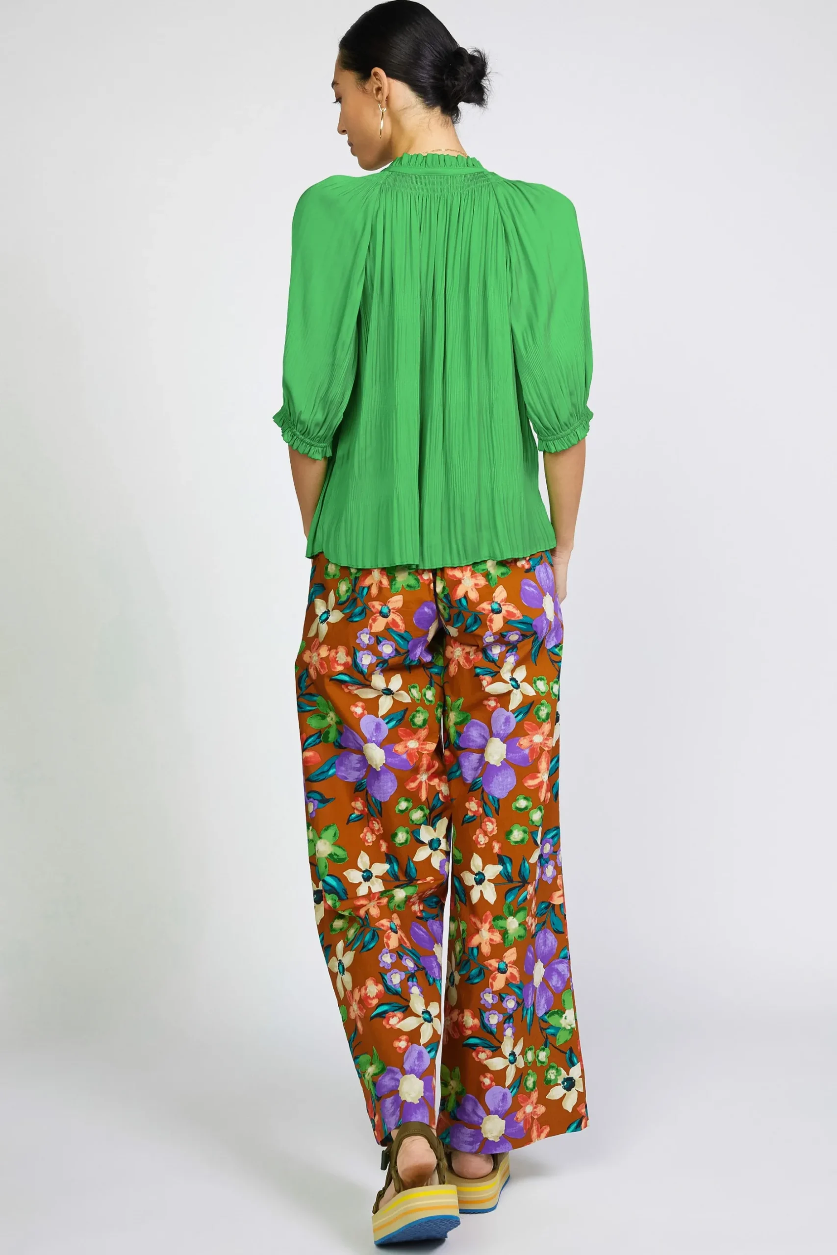 A self-tie neckline and delicate ruffles heighten the romance of this breezy blouse. It’s flowy and feminine, cut for a relaxed shape with a softly pleated texture. The lush emerald green color makes it even more striking. Runs large