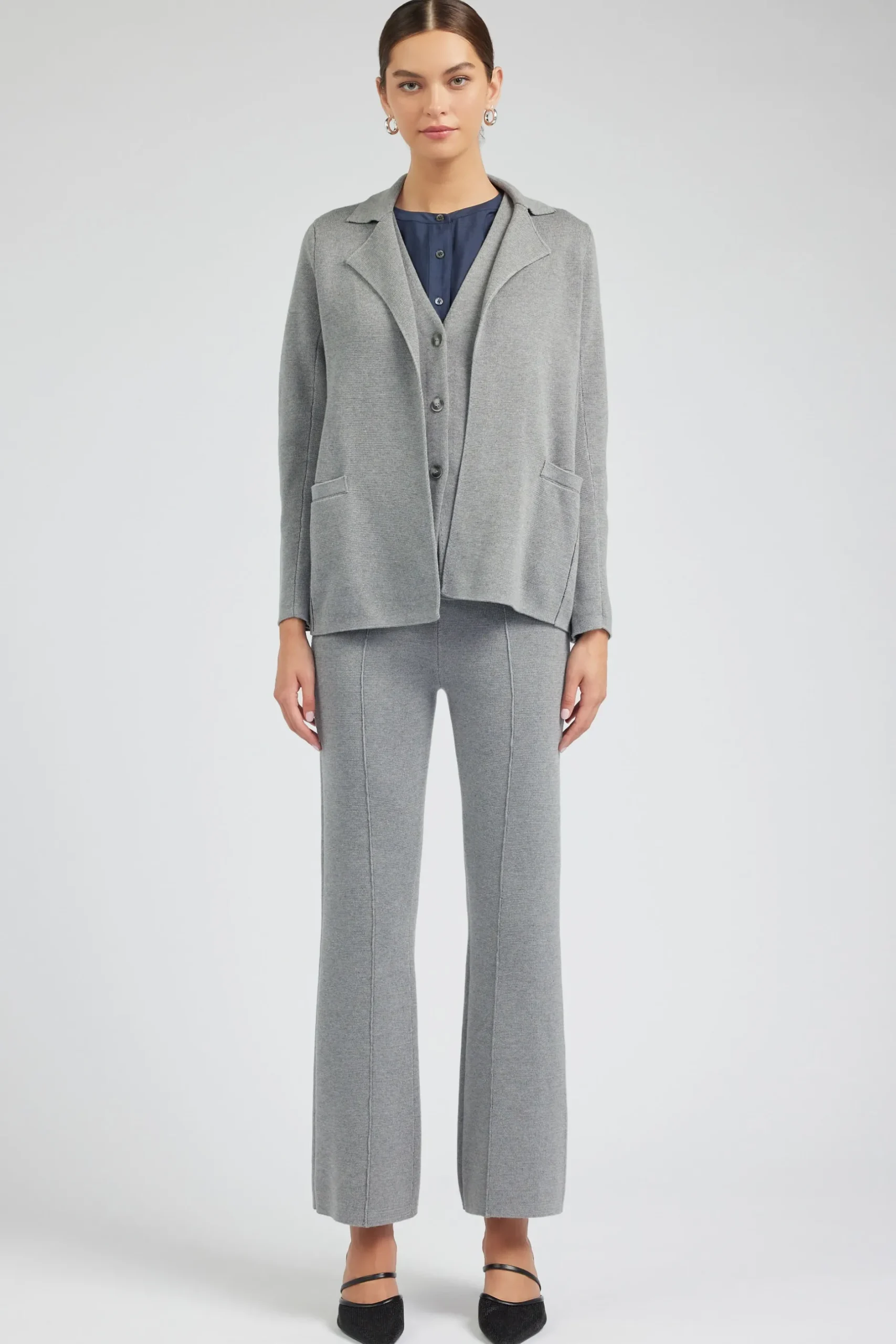 This knitted blazer offers the comfort of a sweater and the polish of tailoring. It’s soft yet structured, designed with notched lapels, button closures, and hip pockets at the front.